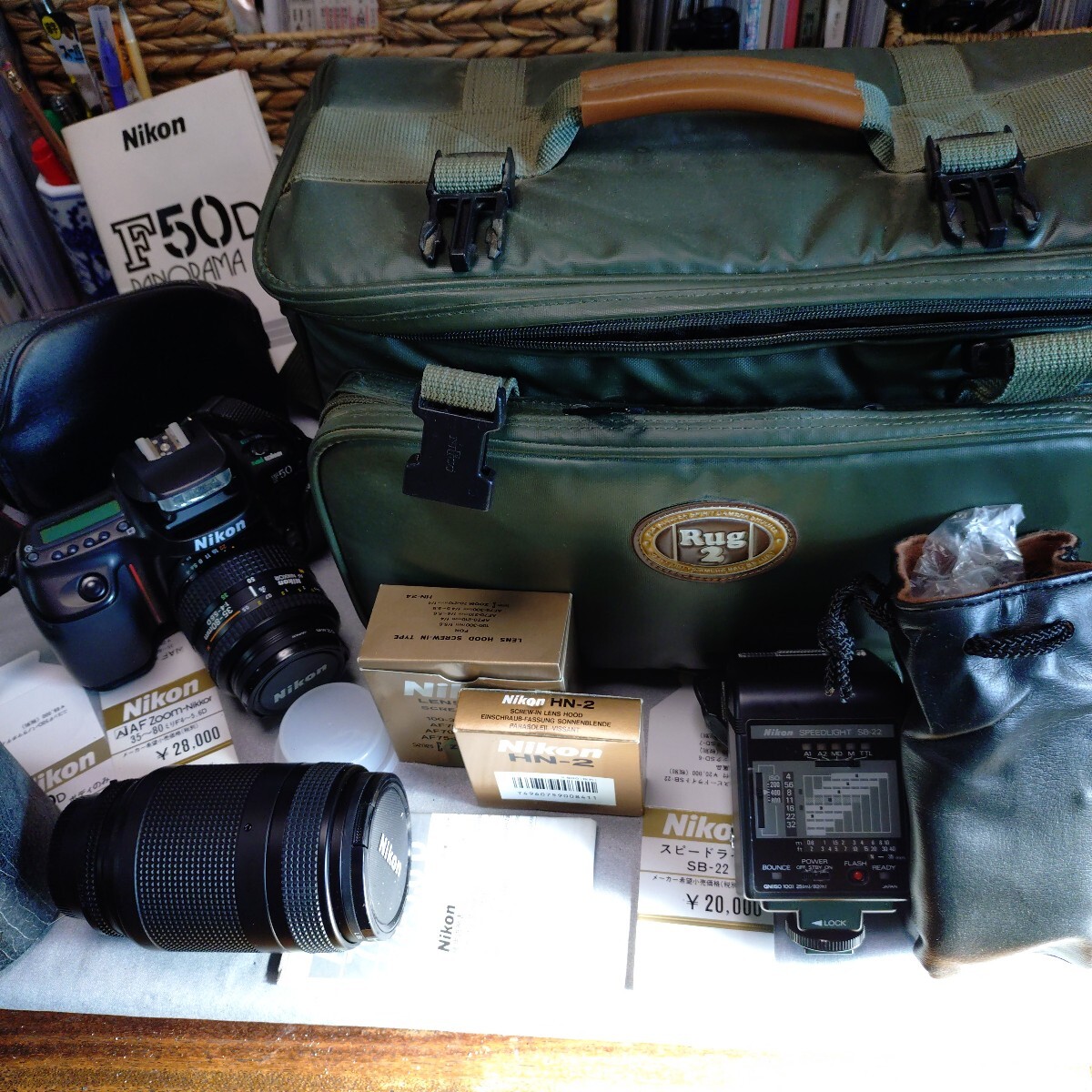 > Nikon ニコン 50 D カメラ PANORAMA AFzoom 35-80mm と70-210mmとスピードライトSB-22 とレンズフード2と一式収納ケース付 説明書