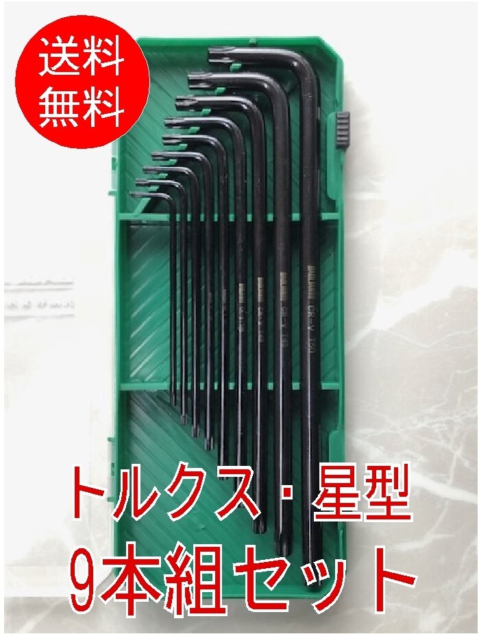 - 【9本組セット】ケース付■トルクスレンチ 六角星型■いじり止め ロングタイプ L型 T型 T10・T15・T20・T25・T27・T30・T40・T45・T50