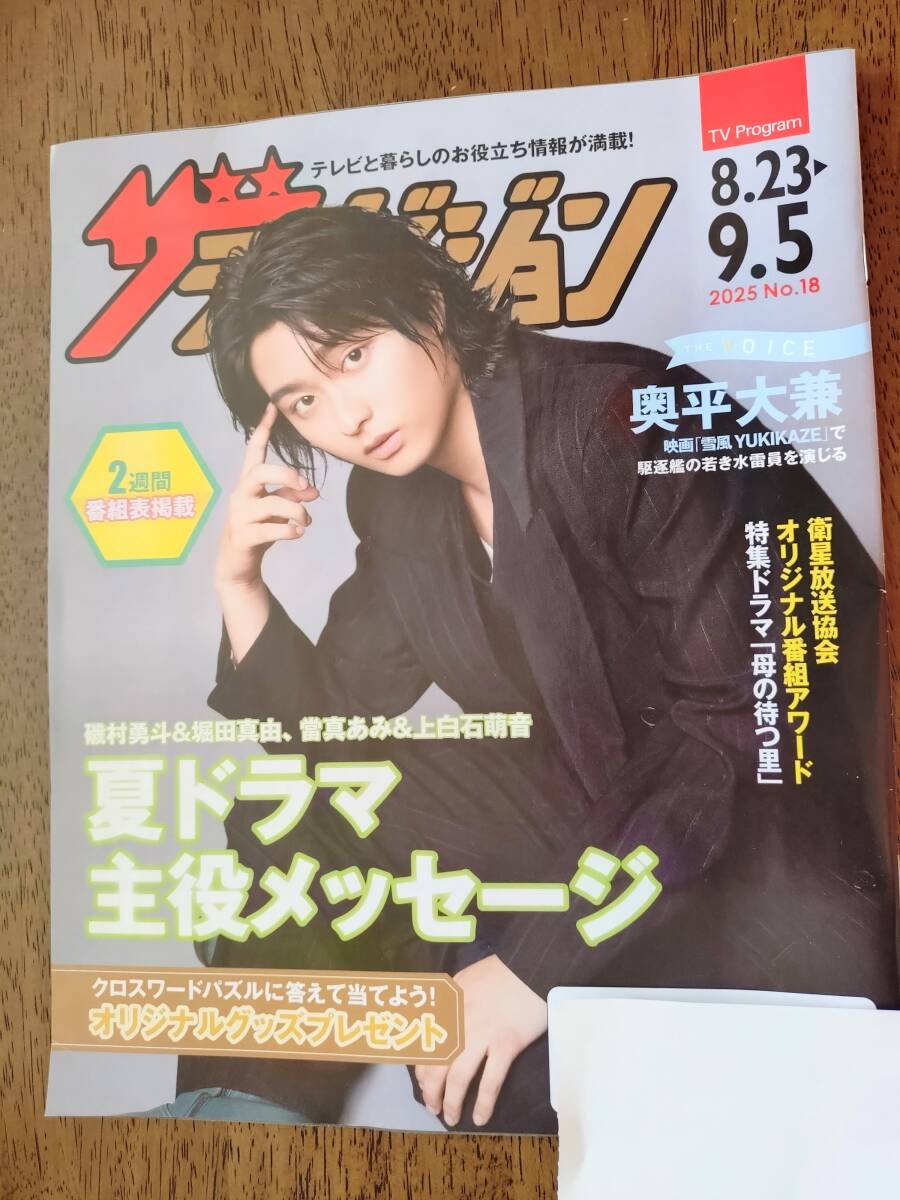 > ◎[ザ・テレビジョン 2025.8/23-9/5 日本生命]非売品 奥平大兼/磯村勇斗/堀田真由/上白石萌音/當真あみ/北村匠海/横浜流星