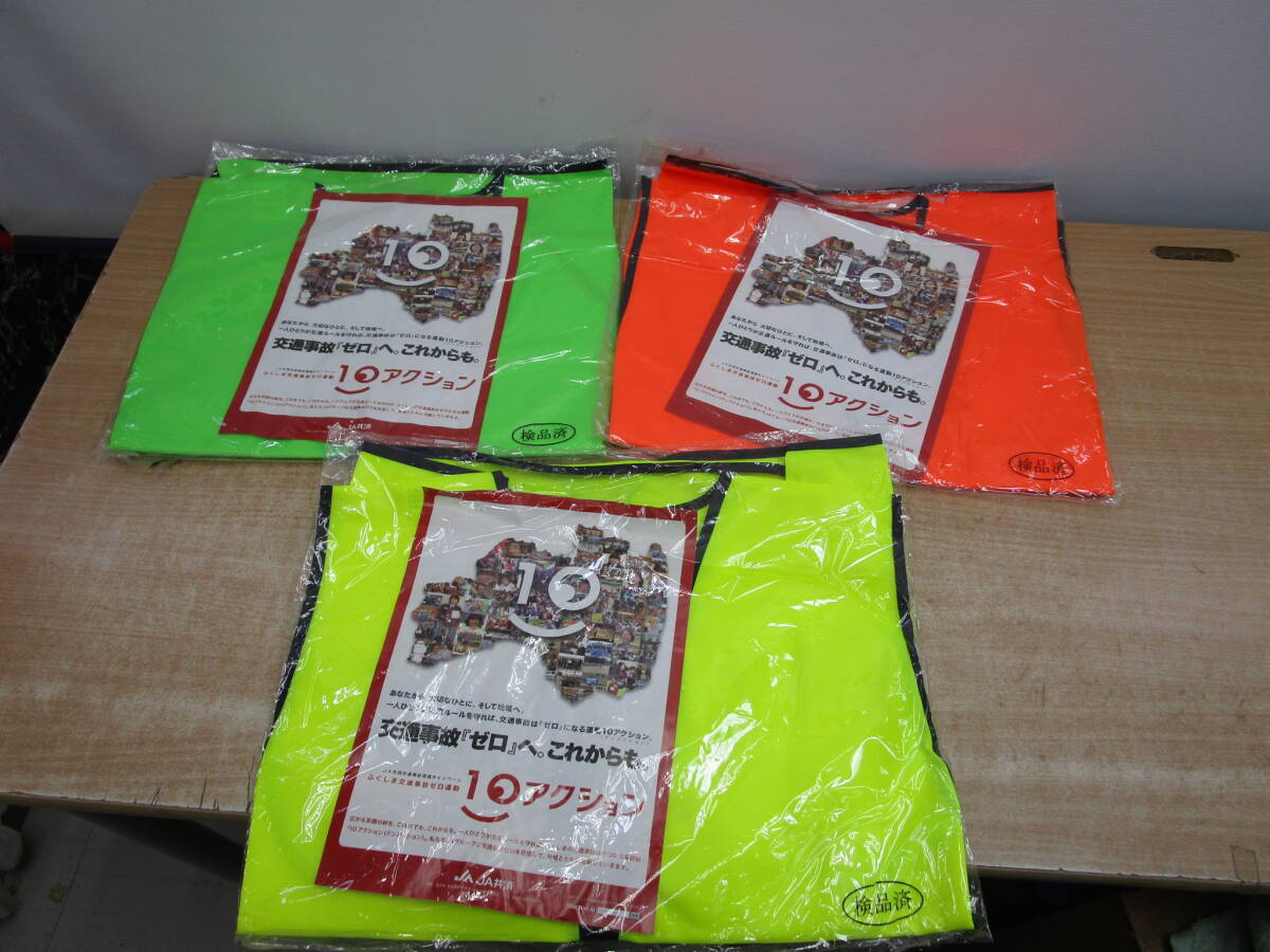 - P156★JA共済 10アクション 反射ベスト チョッキ オレンジ・黄・グリップ色各1点の3点セット 安全ベスト 警備 工事現場★未開封品