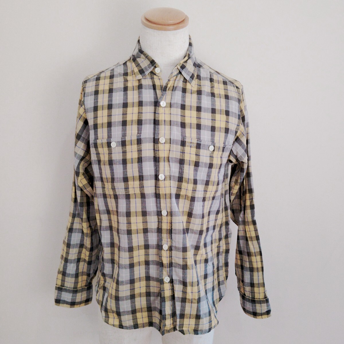 - 0822/S/sanfrancisco メンズ 長袖シャツ ブラウス チェック柄 グレー イエロー