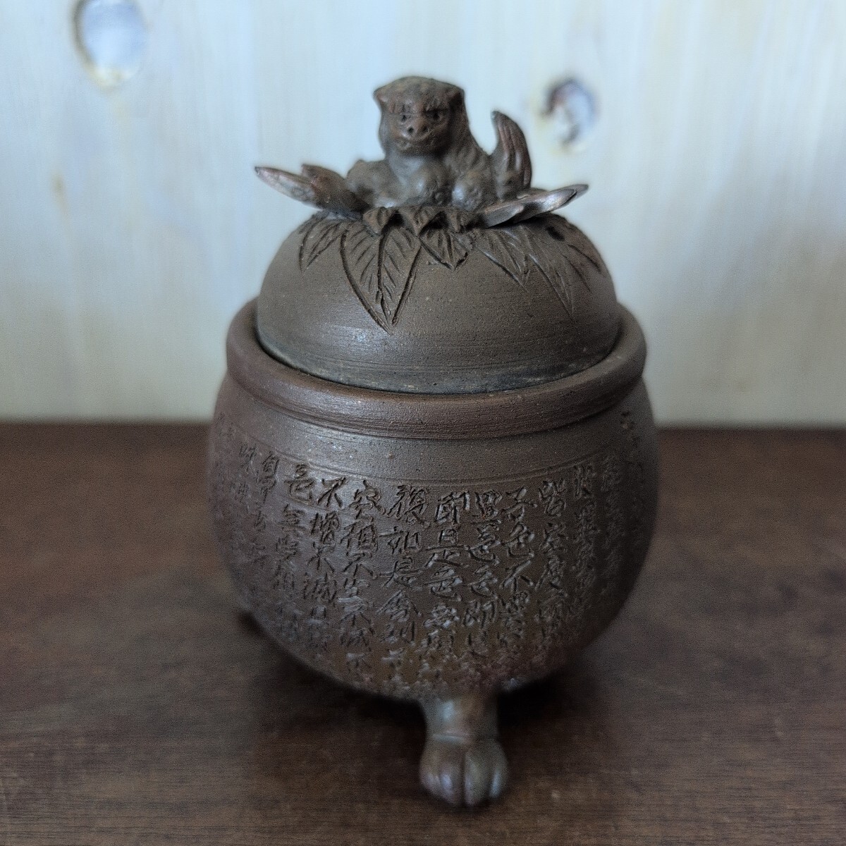 - 備前焼 般若心経 獅子 三足 香炉 茶道具 香道具