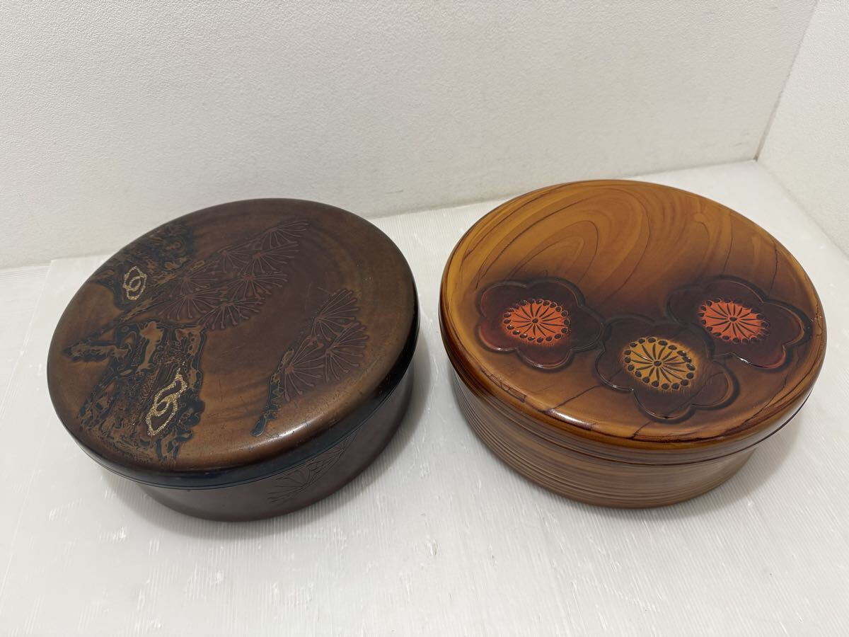 - D(0822y13) 茶櫃 茶びつ 茶道具 丸型 茶器入れ など いろいろ 2点 まとめ売り