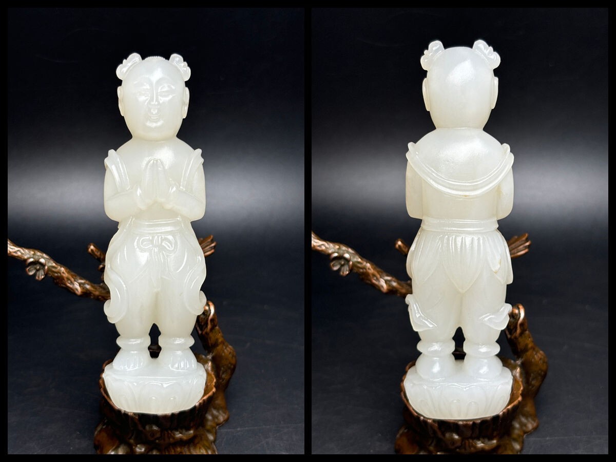 - 「清時代 和田玉 白玉彫り 一心向善 善財童子」極細工 擺件 中国古賞物 古美術 旧蔵出