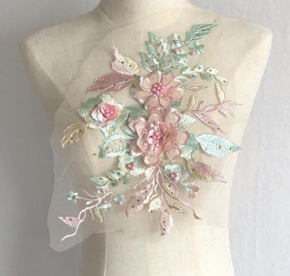 - 上質お花 レース 花柄レース生地5枚セットお花のチュールレース真珠刺繍入り花レースドレス生地レース DIY手芸用品アクセサリー テーブル掛