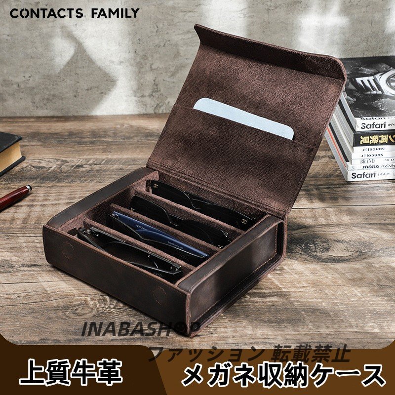 - メガネケース 貴重なメガネ 収納 4本対応 レディース 眼鏡ケース 本革 コンパクト スリム ソフト PCメガネ サングラス 老眼鏡ケース