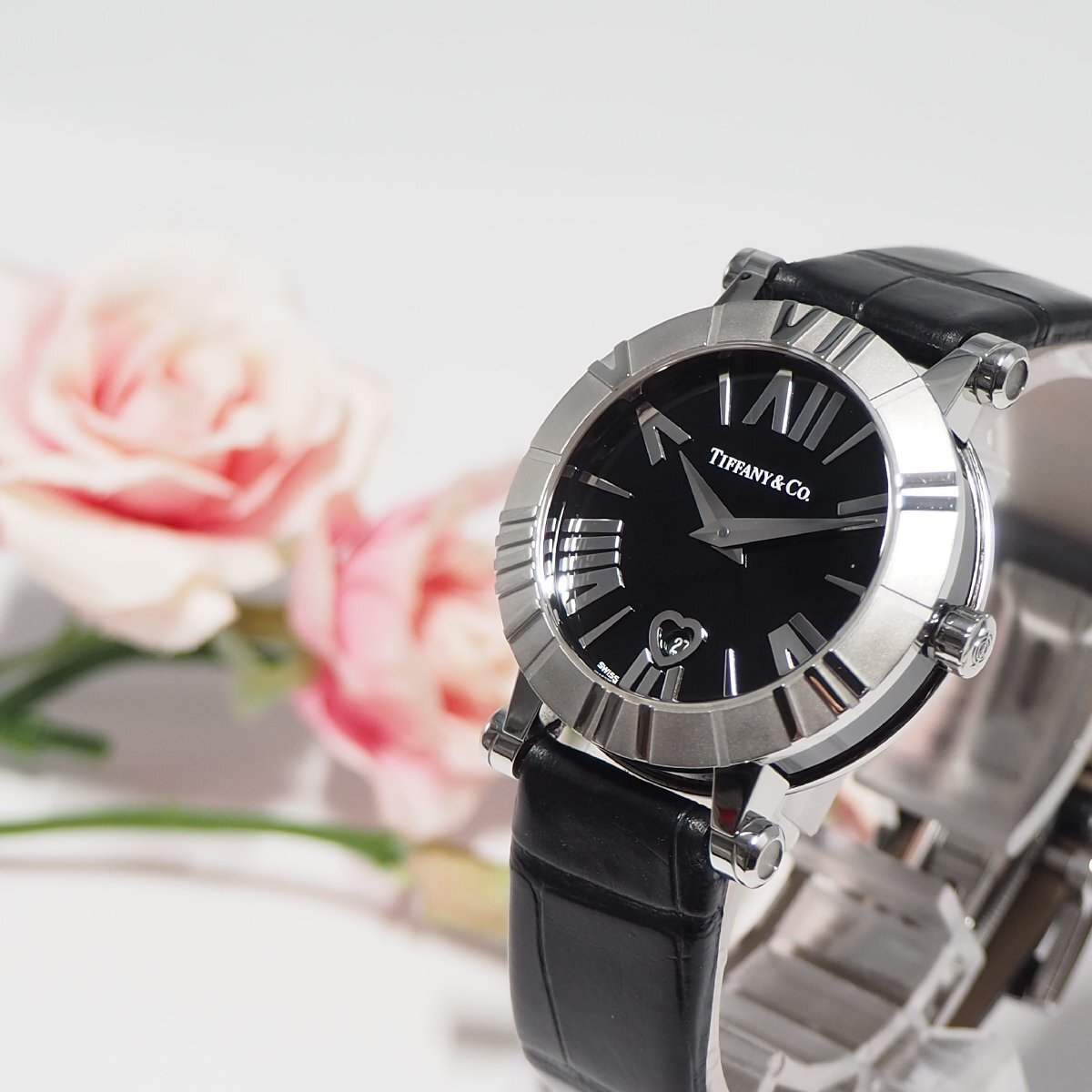 ★★★★ 美品 ティファニー TIFFANY&CO アトラス デイト 純正革ベルト レディース 腕時計 H155 中古★★★★