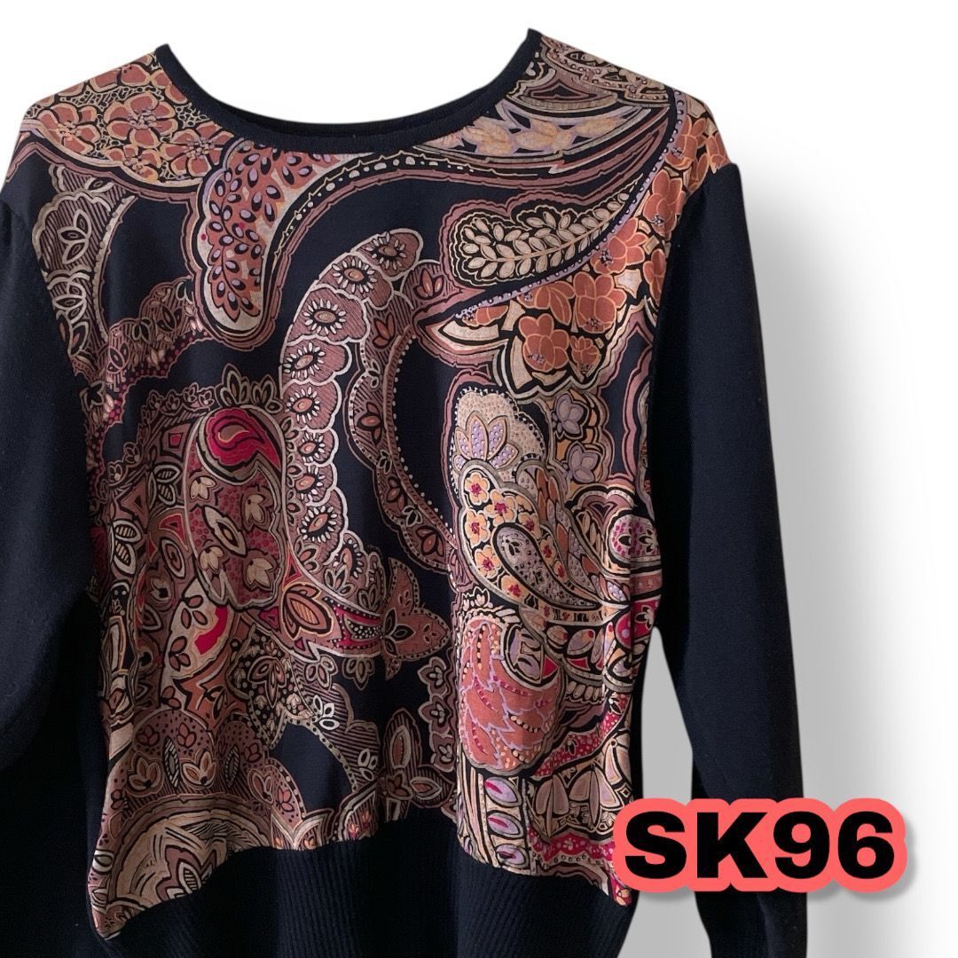 > LEONARD (レオナール) 花柄 プリント トップス 黒 ブラック マルチカラー Lサイズ レディース カットソー 上品 高級 人気 管理SK96