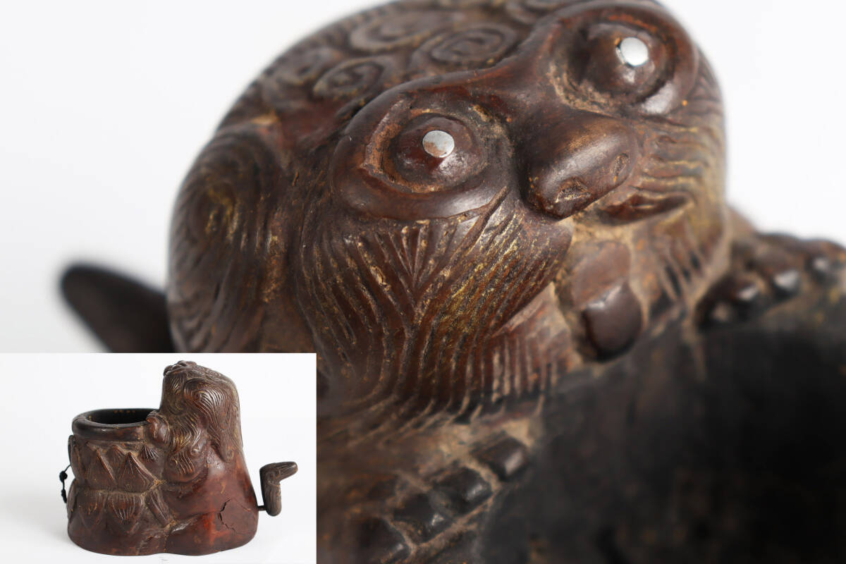 - 希少 珍品 朝鮮古美術 李朝民芸 木彫 獅子形墨壺 李朝墨壷(墨坪墨綫盒民藝)E799