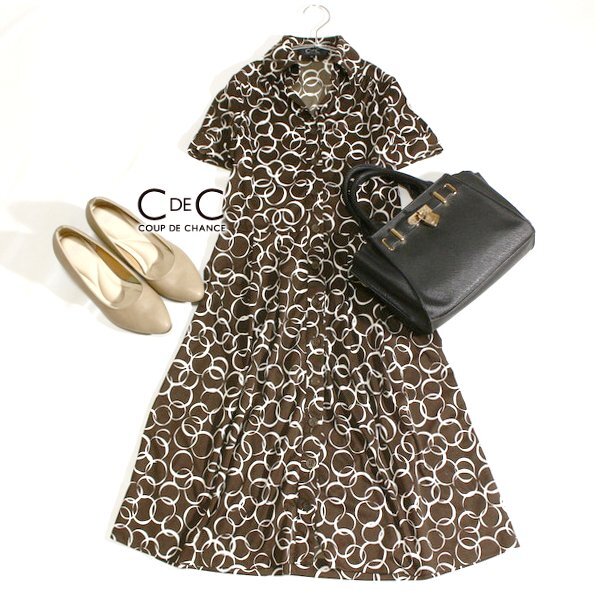 > 美品 COUP DE CHANCE クードシャンス 綺麗め ストレッチ ワンピース 38号 M 春 夏 25E07