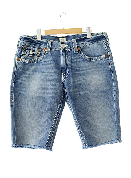 - トゥルーレリジョン TRUE RELIGION ロゴ 刺繍 カットオフ デニム ショーツ ハーフ パンツ 24859NBTDL 36 インディゴ ブルー ☆AA★250823