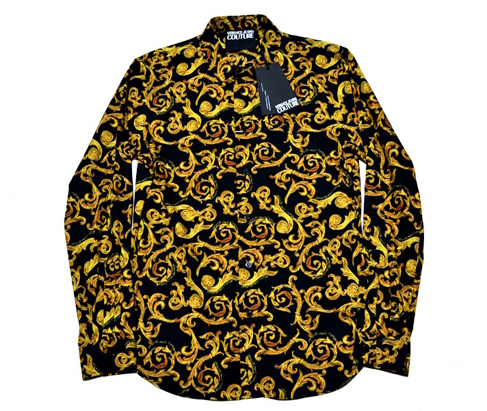 > 【新品】Versace ヴェルサーチ ジーンズクチュール 高級ドレスシャツ 50(LLサイズ程度)王道/圧巻 ロゴ&バロック調 通年 タグ付き 9739