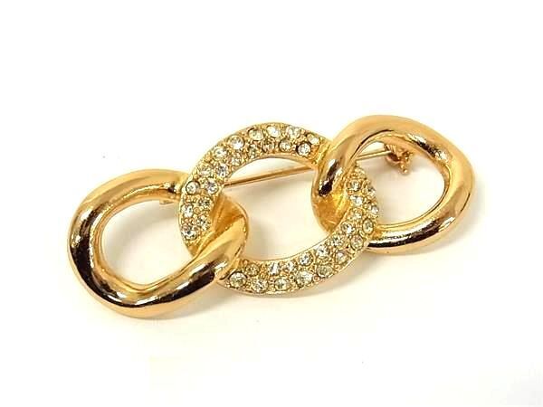 > クリスチャンディオール ブローチ ピンブローチ メタル ラインストーン - ゴールド コサージュ 華やか【本物保証】