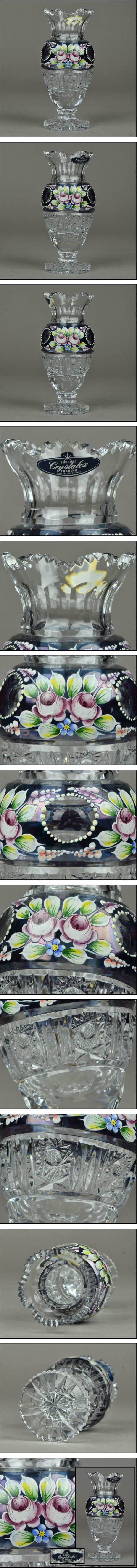 - 【ACT】ボヘミア【BOHEMIA】クリスタル エナメル彩 フラワーベース 花瓶 花入 飾壷 A7-710H
