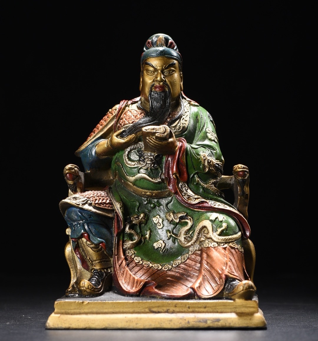 - 時代旧蔵 清時代 銅製 銅彩色の 関公造像 仏教古美術 仏像 細密細工 廃寺旧蔵 廃寺買出品 823