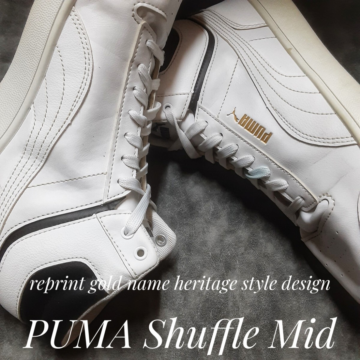 - 最値!復刻ゴールドネーム!ヘリテージスタイル!プーマ(PUMA)シャッフル ミッド 1948高級シンセレザー スニーカー!ホワイト!白黒 27.5cm