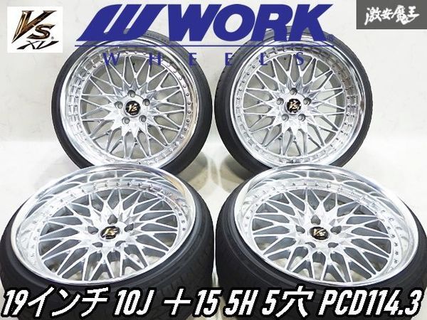 - ●WORK ワーク VS-XV 19インチ 10J +15 5穴 PCD114.3 深リム/メッシュ ホイール 2024年 タイヤ 4本 クラウン マジェスタ マークX カムリ