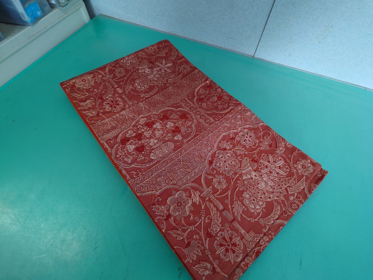 > ●115【錦繍】ふくれ織 刺繍 金糸 金彩 赤×ゴールド 鳥 花 壺 古代 エジプト 神殿 模様 豪華 高級 六通 袋帯 縁起物 ③