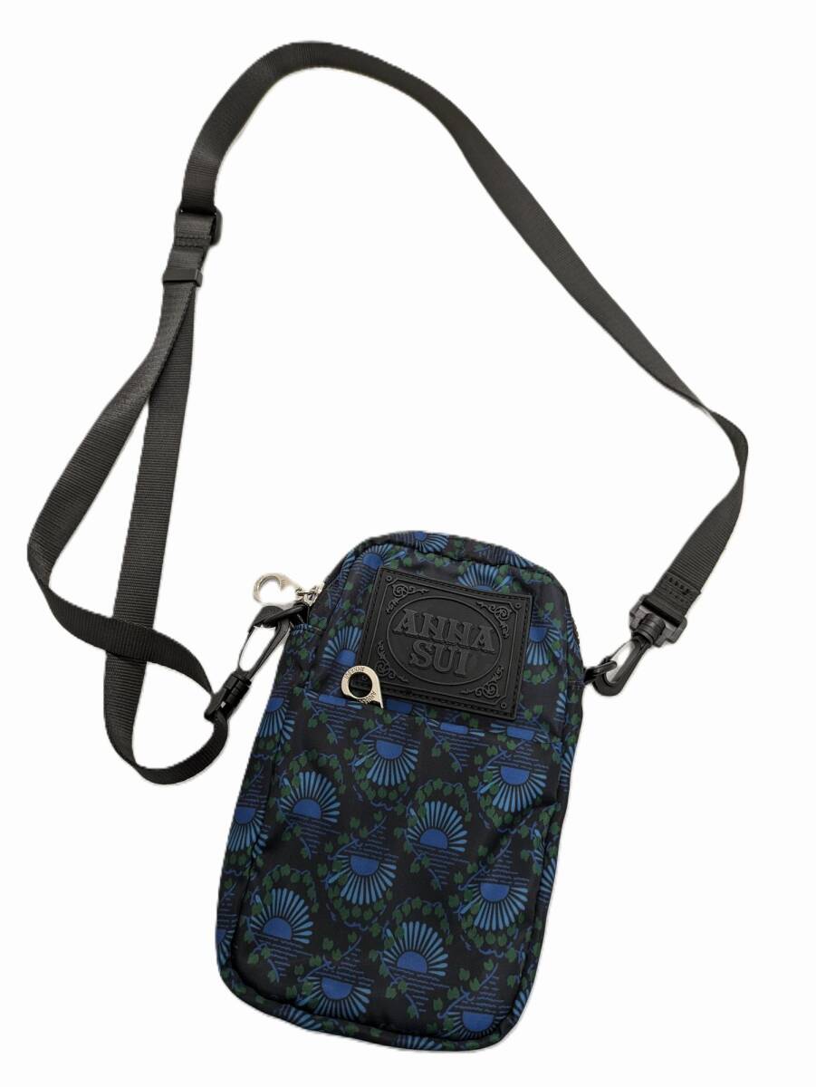 - 中古 ANNA SUI アナスイ ジャーニー ミニショルダーバッグ ロゴパッチ ブルー