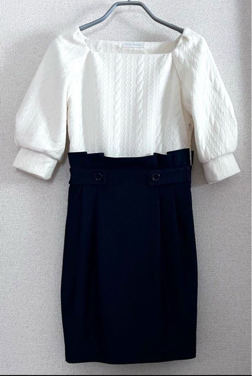 - セシルマクビー ワンピース ドッキング 切り替え デニム 半袖