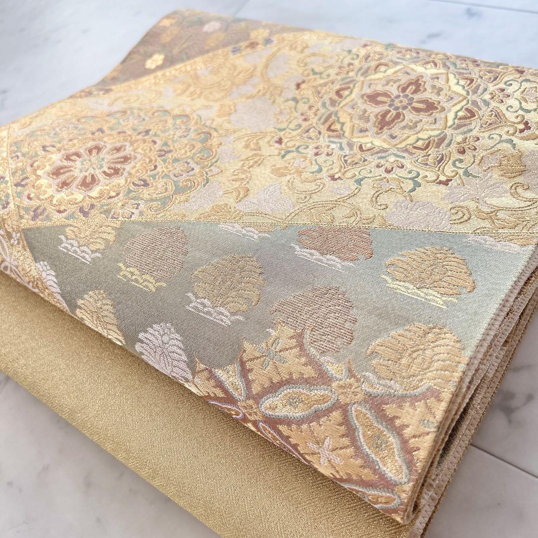 - 袋帯 正絹 金糸 六通柄 華文様 鳳凰文 約420cm 上品フォーマル 美品
