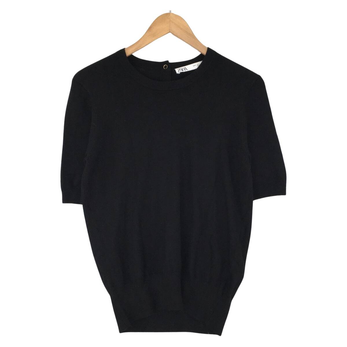 - ZARA ザラ クルーネック ニット カットソー sizeEUR L/ブラック ゆうパケットOK
