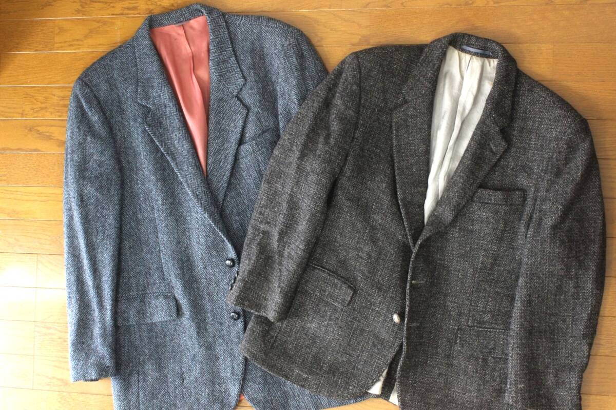 - 25【訳有】素材用 ハリスツイード ジャケット 2着セット メンズ A4 M & A8 4L ヘリンボーン Harris Tweed ウール tqe Wool Blazer 秋冬