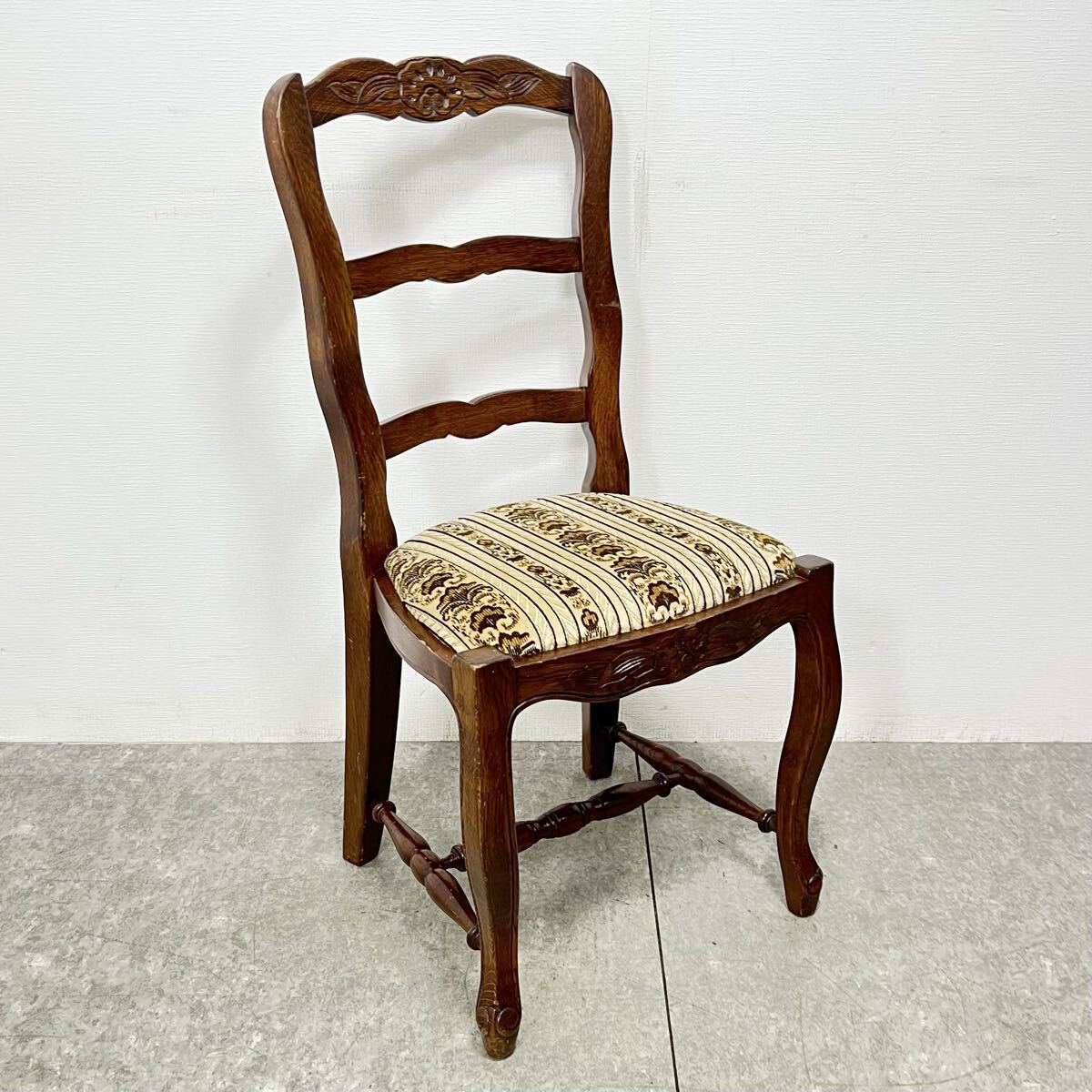 > □ 三越ブルージュ チェア ルーマニア オーク材 クラシック 彫刻 猫脚 ダイニングチェア 椅子 木製フレーム アンティーク調 □25082502K