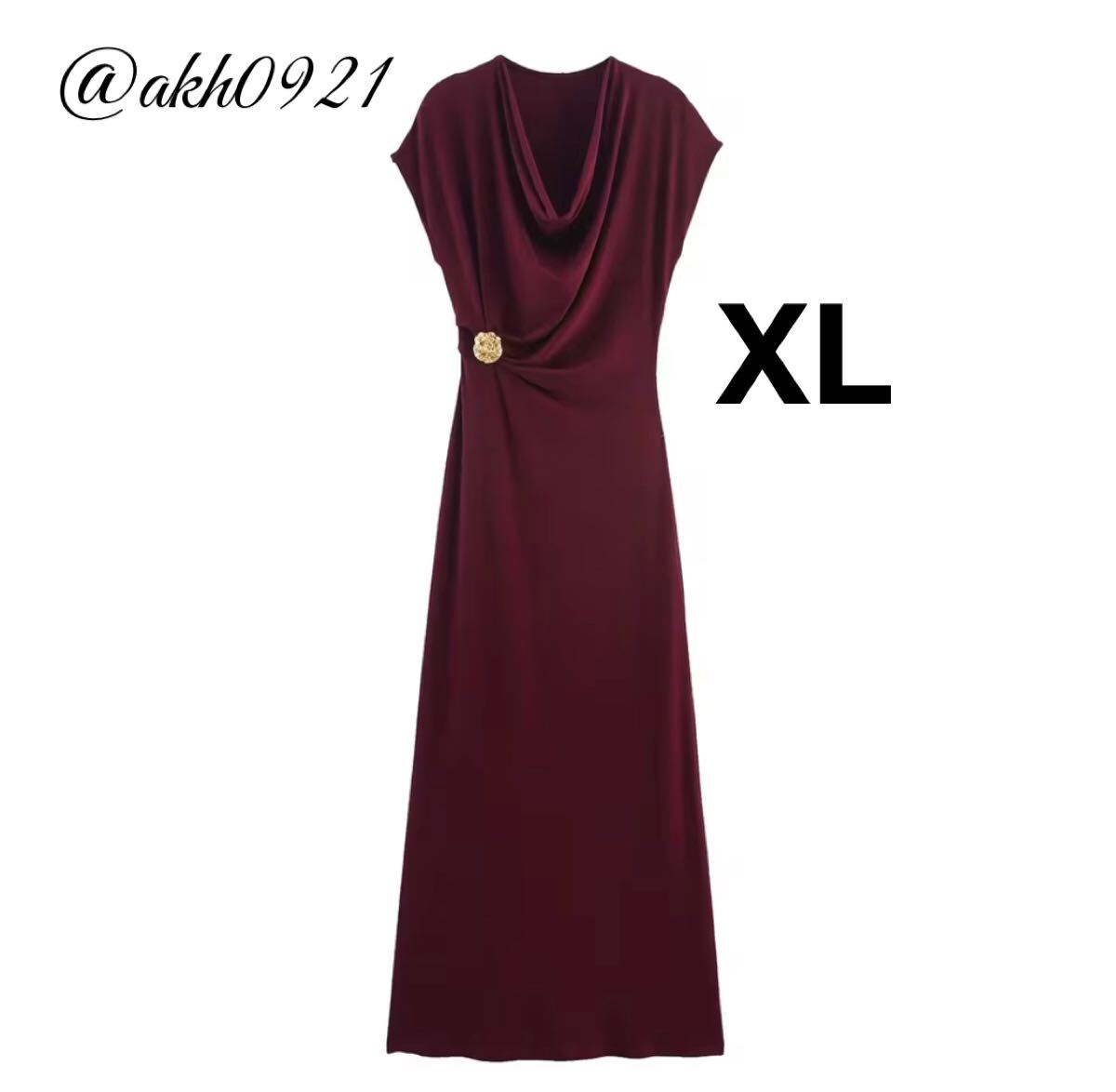- 新品未使用★2025 A/W 秋新作★vintage ヴィンテージ レトロ ボルドー ロング ワンピース ドレス XLサイズ レディース★ZARA 好きな方に