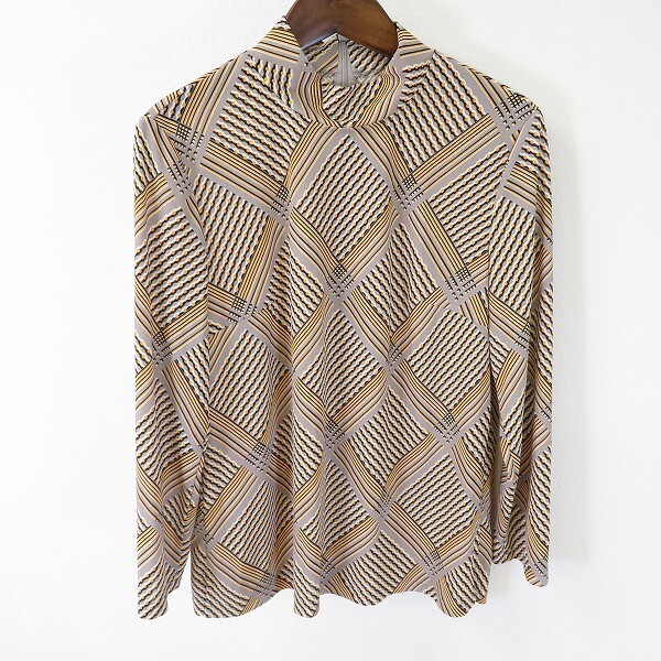 > #a レリアン Leilian カットソー ハイネック 13 ベージュ系 白 黒 山吹 総柄 長袖 大きいサイズ 日本製 レディース [962996] k01