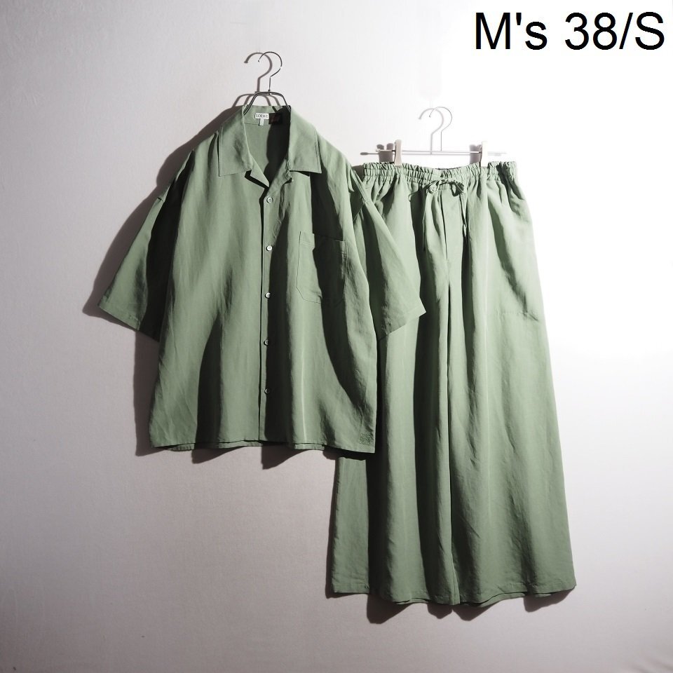 - R1078P ▼LOEWE ロエベ × Paula's Ibiza▼ ショートスリーブ シャツ クロップド トラウザーズ セットアップ グリーン 38/S 春夏 rb mks