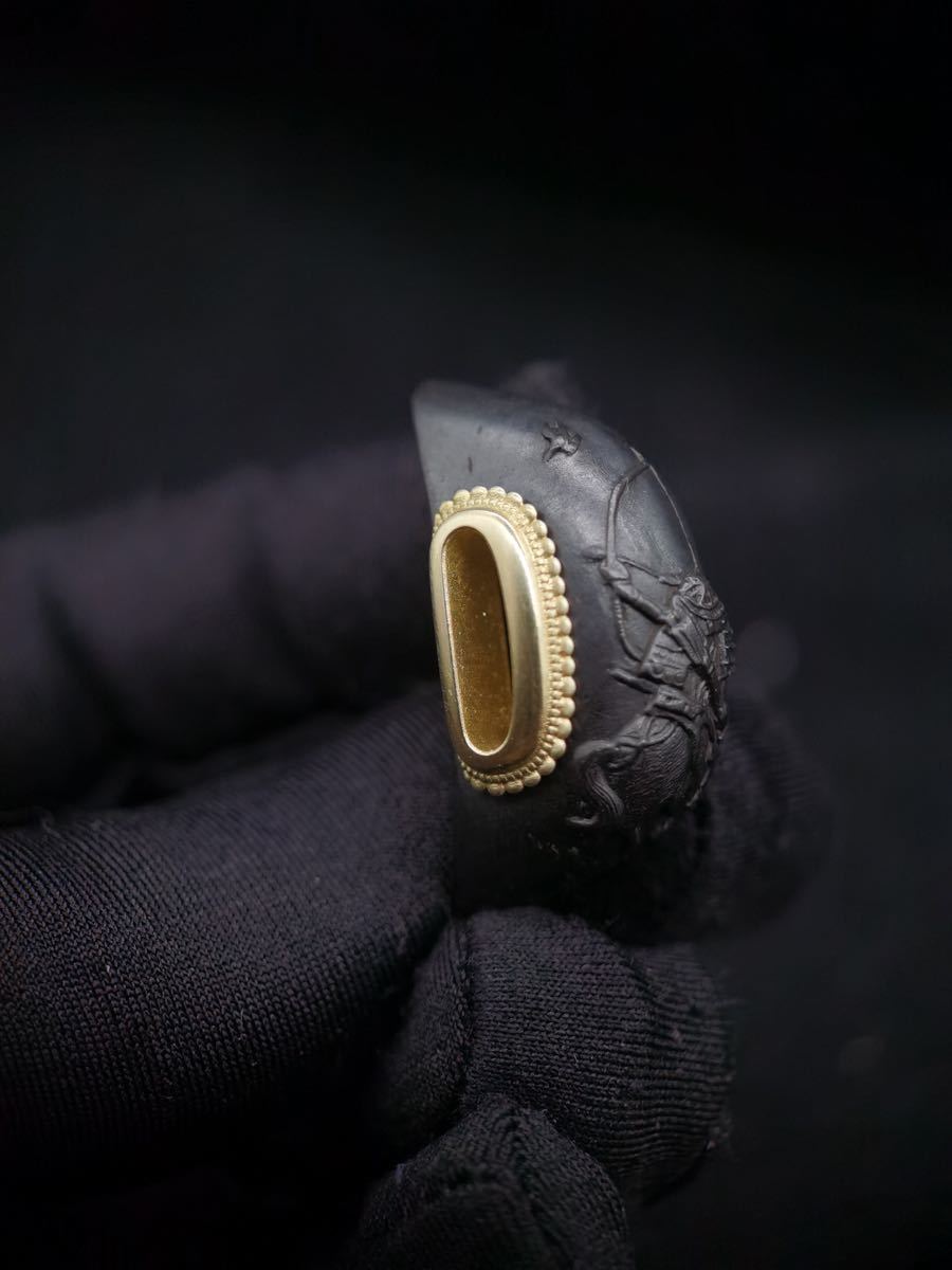 > s-082 射雁図栗形鳩目 目貫 容彫 金色絵 日本刀 武具 刀装具 銅製 小道具 鍔 目貫 縁頭 拵 栗形
