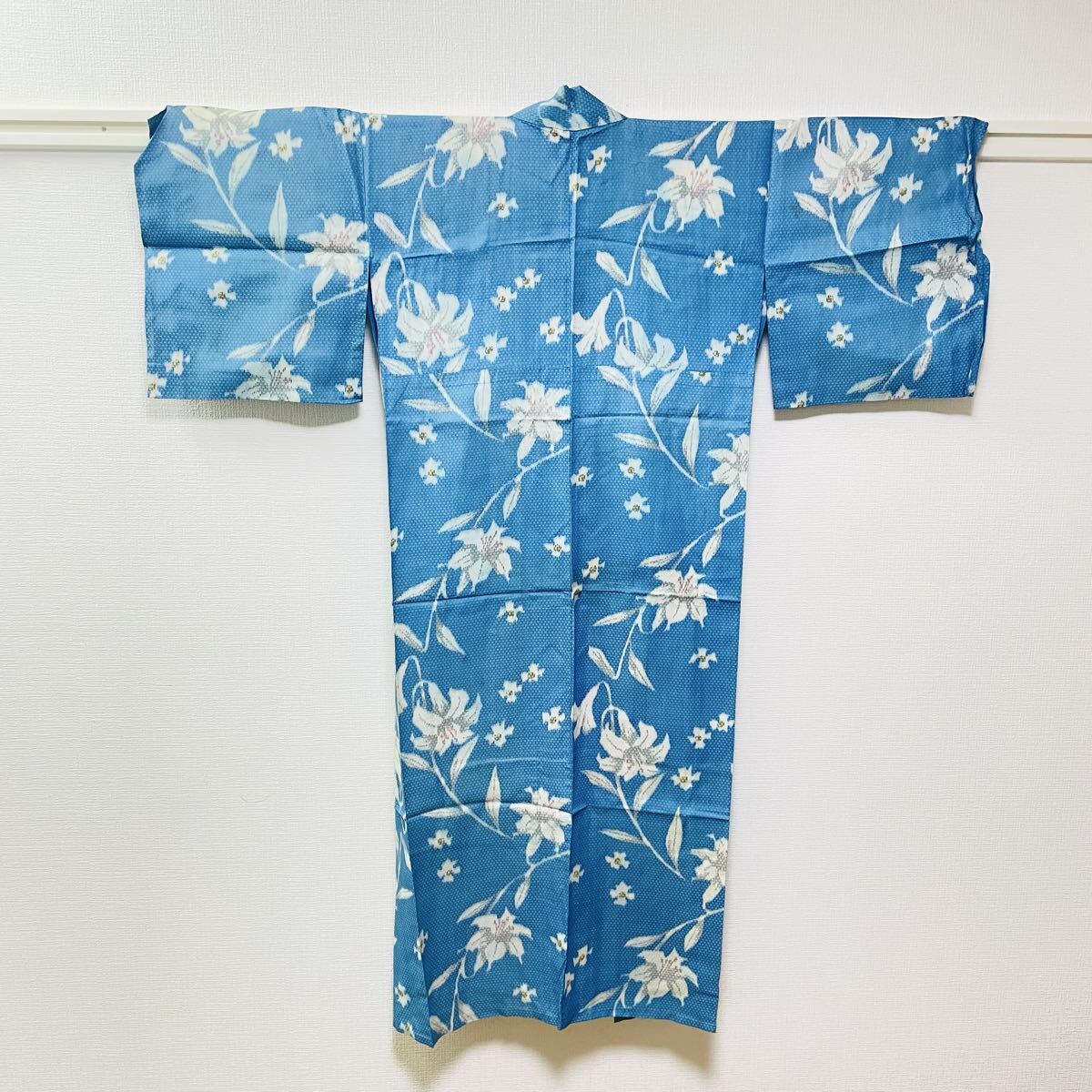 - 同梱可【253】DMky-8.3/ 着物 着用用 浴衣 生地取り用水色ベース 小紋 おしゃれ