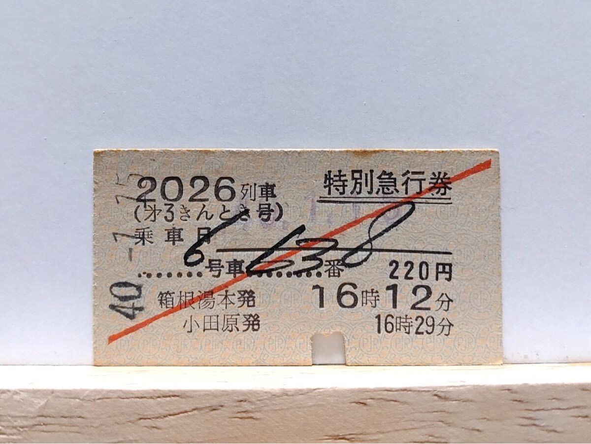 > 【切符/硬券】2026列車 第3きんとき号 特別急行券 箱根湯本発 小田原発 小田急電鉄 箱根湯本案内所発行 S40 @f