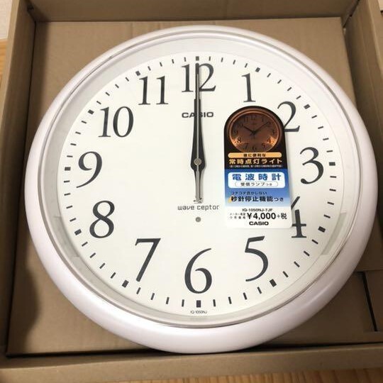 - CASIO(カシオ) 電波掛け時計 アナログ 新品 ホワイト 夜間秒針停止 常時点灯 IQ-1050NJ-7JF 未使用品 直径33cm