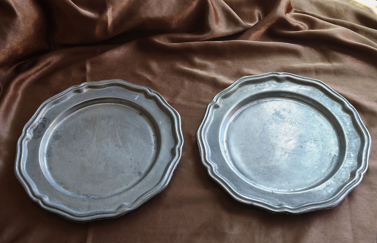 - ピューター ディナープレート クラウンキャッスル アメリカ製 トレイ 2枚セット エタン 皿 菓子器 エタン 什器 ビンテージ