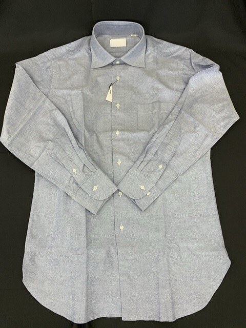 > SALE 新品 1.7万円 高品質 日本製 新品未使用品 綿100% ワイシャツ カジュアルシャツ Lサイズ D-997 ブルー系 長袖 胸ポケット 147-1
