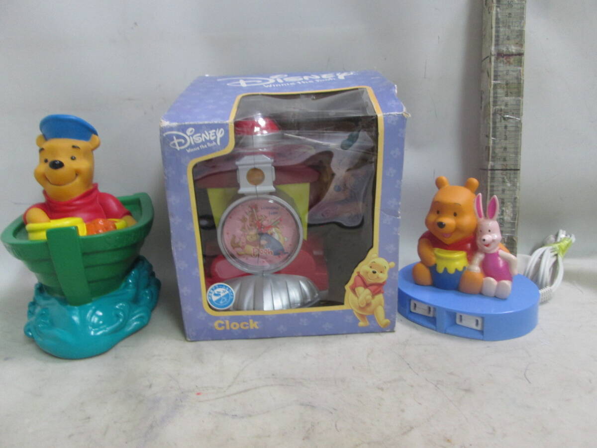 - くまのプーさん 汽笛音アラーム&ライト 目覚まし時計(テストOK+フィギュア付きコンセント+貯金箱 3台で送料は商品説明欄関東850円
