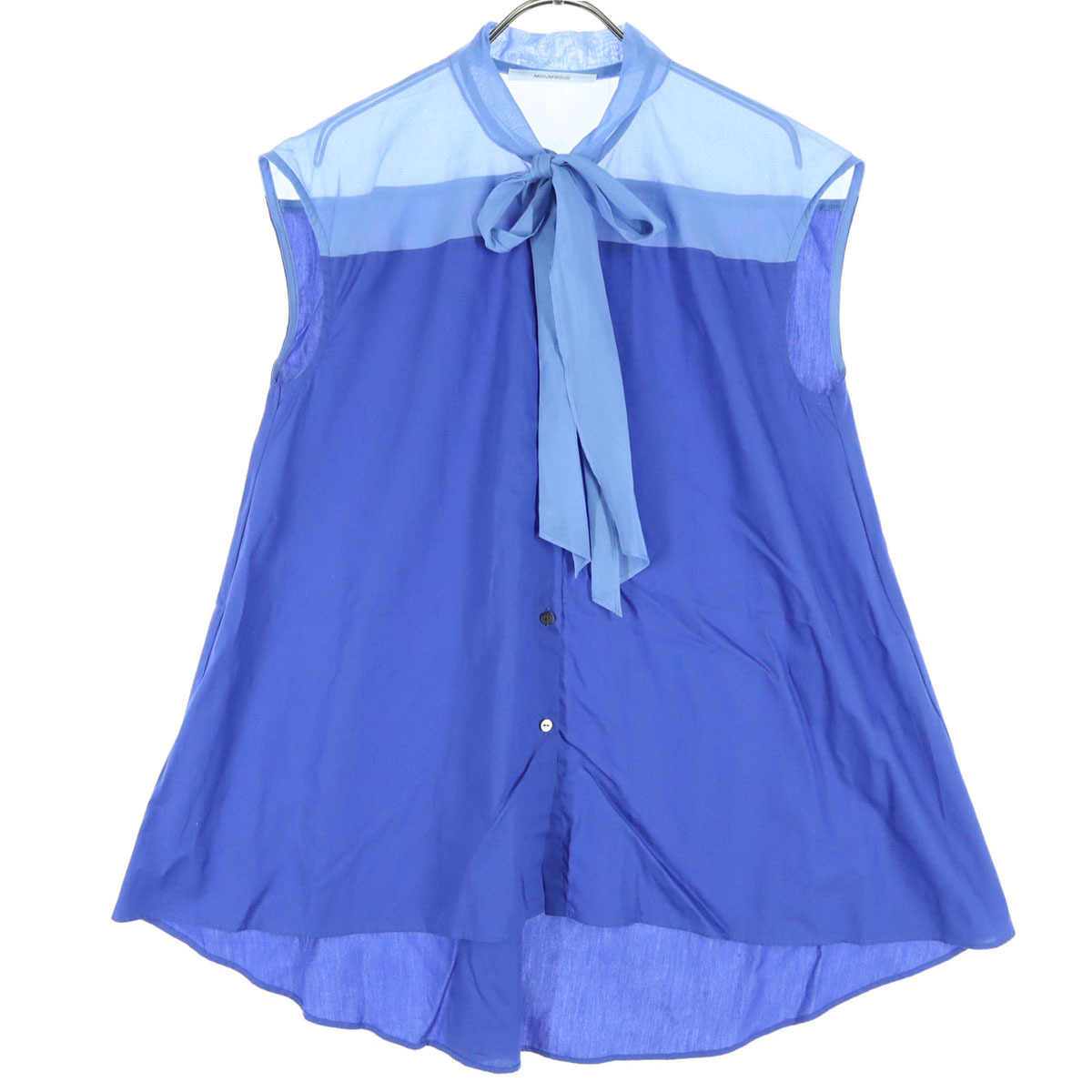 美品 MIDIUMISOLID ミディウミソリッド 日本製 フレンチスリーブ ブラウス ブルー レディース拍卖