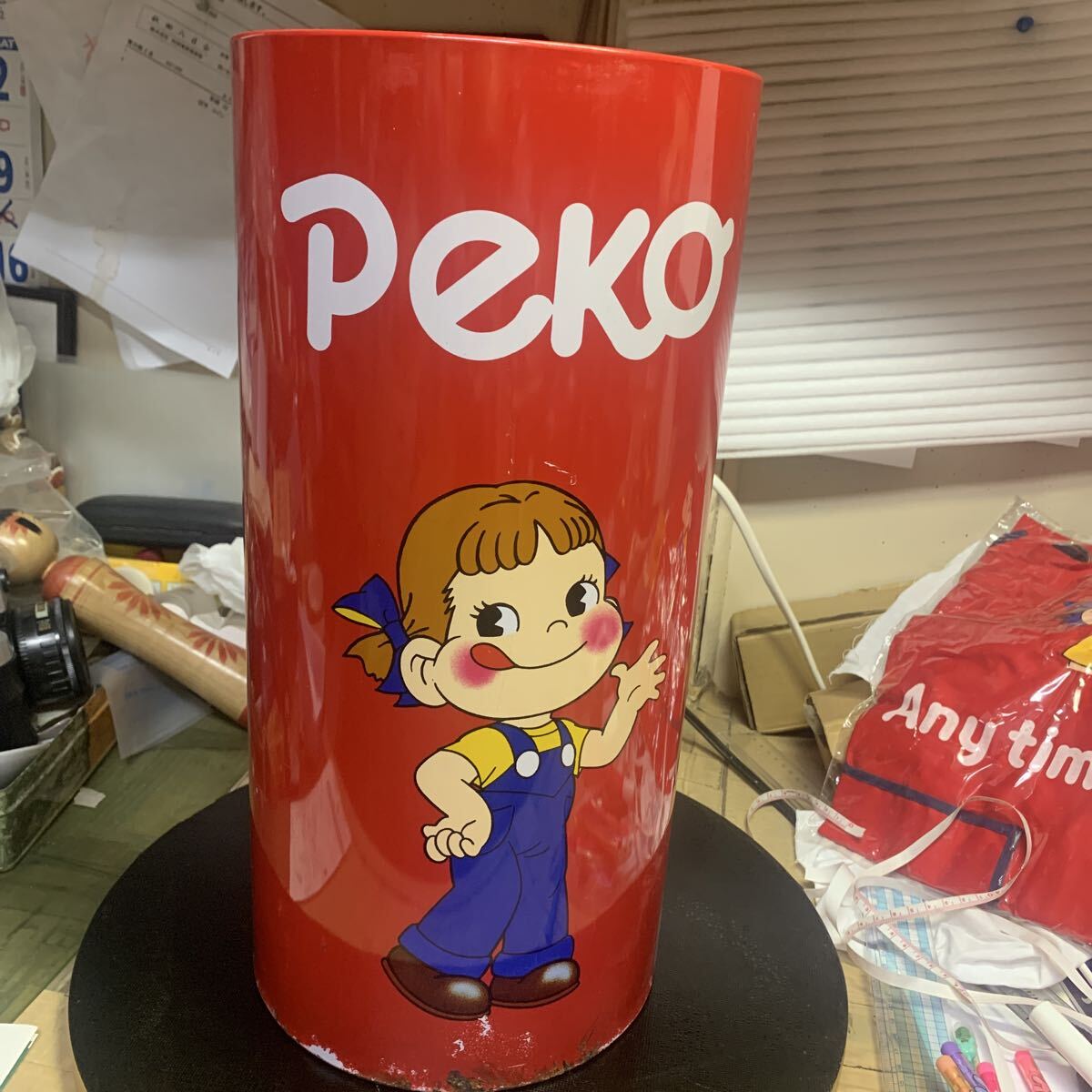 - 当時物 ゴミ箱 レトロ 昭和レトロ ペコちゃん 缶 ダストボックス 傘立て インテリア