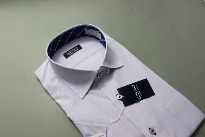 > 送料185円【新品】LUISANT(山喜) ワイドカラーワイシャツ 半袖 /標準体 形態安定 M(39cm) ブルーストライプ柄/UNN601/020(7C237