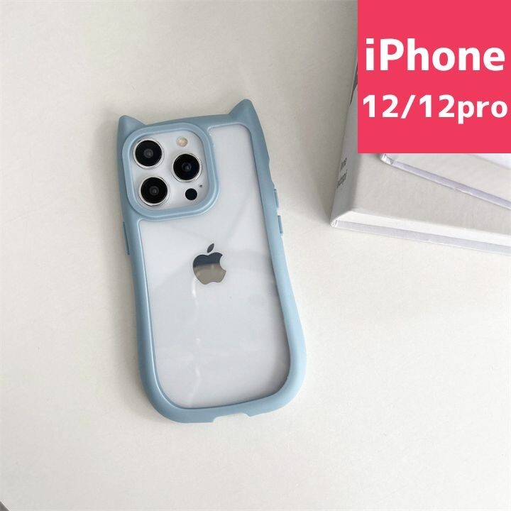 - iPhone12/12pro ケース 猫耳 おしゃれ 韓国 かわいい 青 大人気