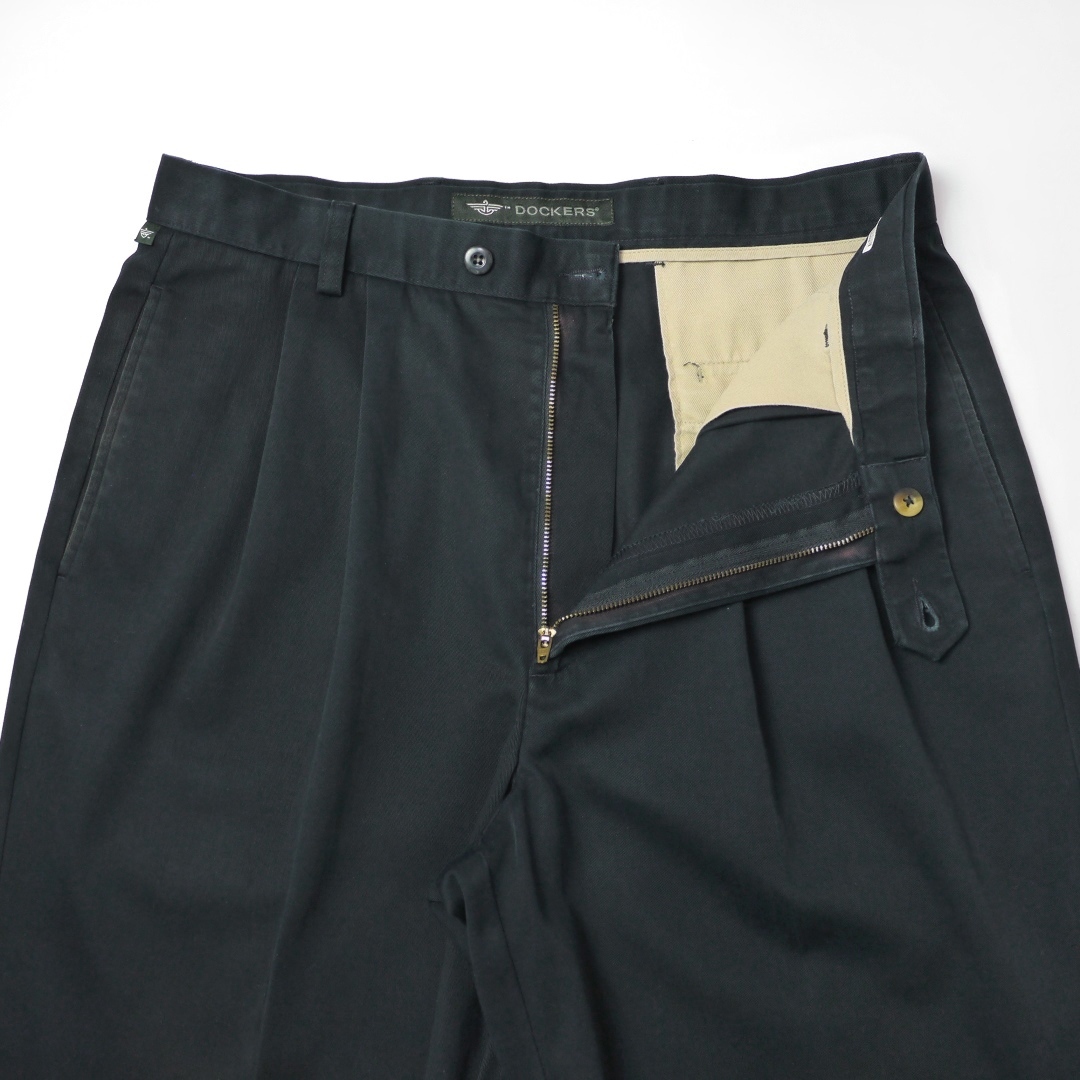 - 黒 90s 00s DOCKERS ビンテージ リーバイス ドッカーズ オデッセイ ツイル ツータック コットン パンツ チノパン フェード ブラック W34