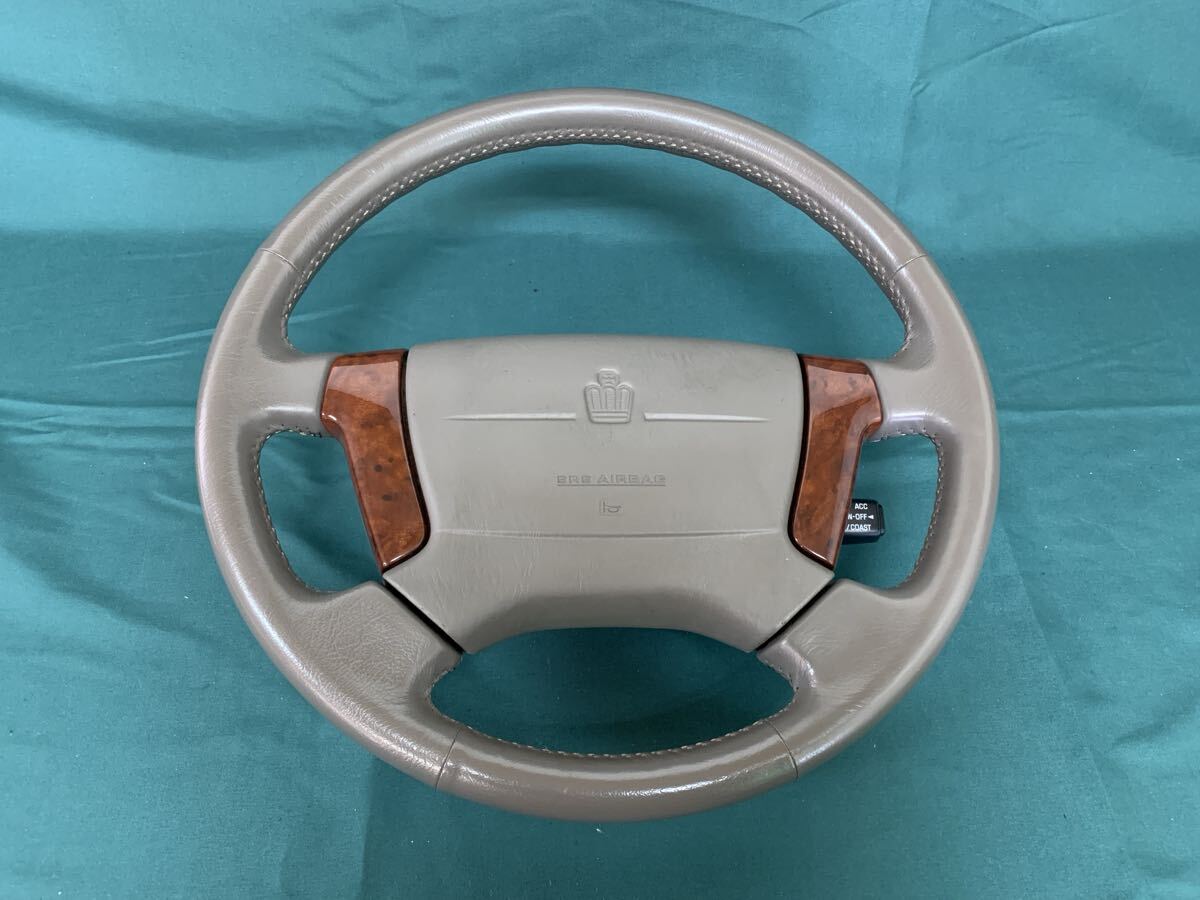- UH058 中古 クラウン JZS171 平成13年2月 純正 ステアリング ホイール ハンドル レザー 革 本体 ホーンパッド 動作保証 べたつきあり