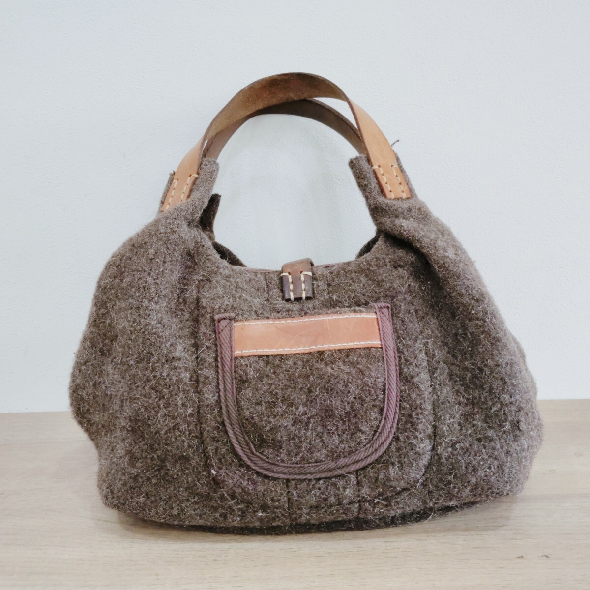 - ARTE POVERA ハンドバッグ トートバッグ フェルト 本革 ブラウン 大容量 鞄