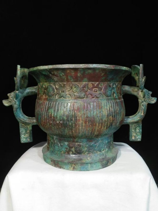- 【美の継承】商周時代 康侯 商周青銅礼器 銘文刻印 重6.5斤 祭祀用礼器 龍耳青銅器 古代食器 純銅製 中国古美術 文房置物 R07071210