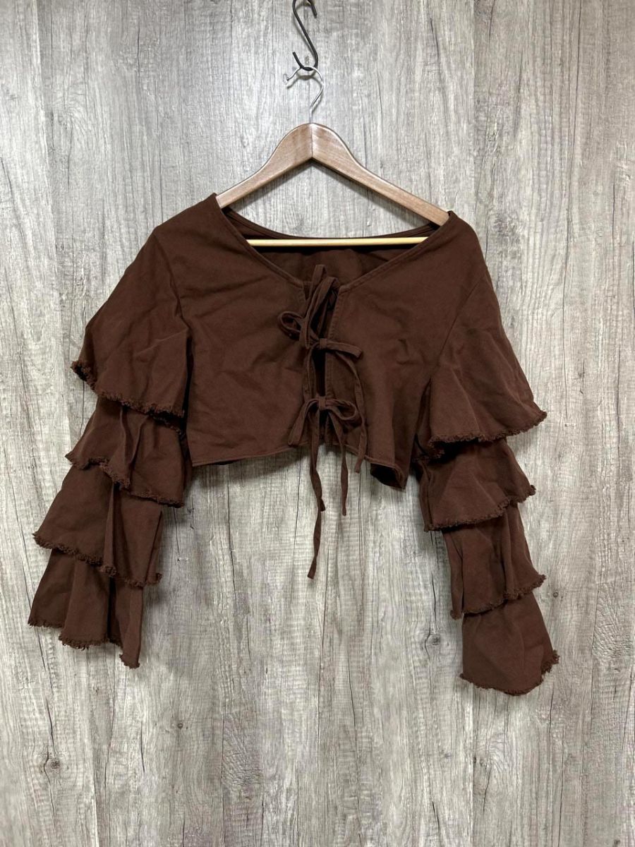 - ネコポスOK meridian 綿100% フリル ボレロ カーディガン 茶 ◇■ レディース