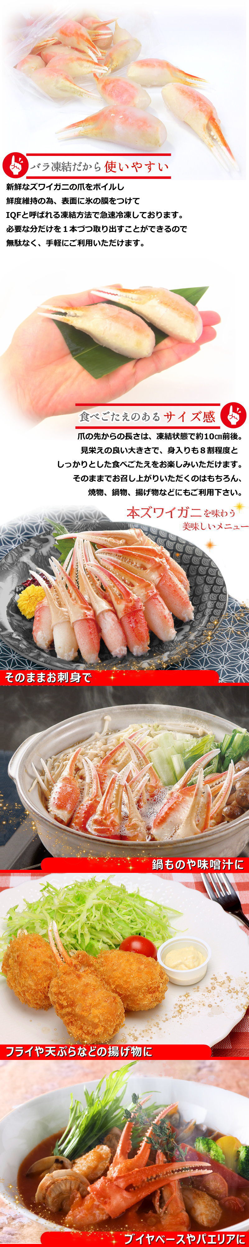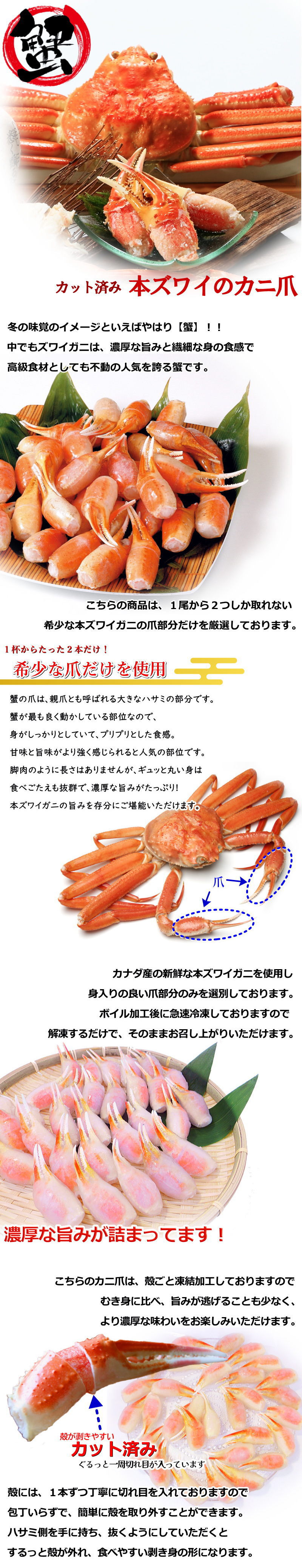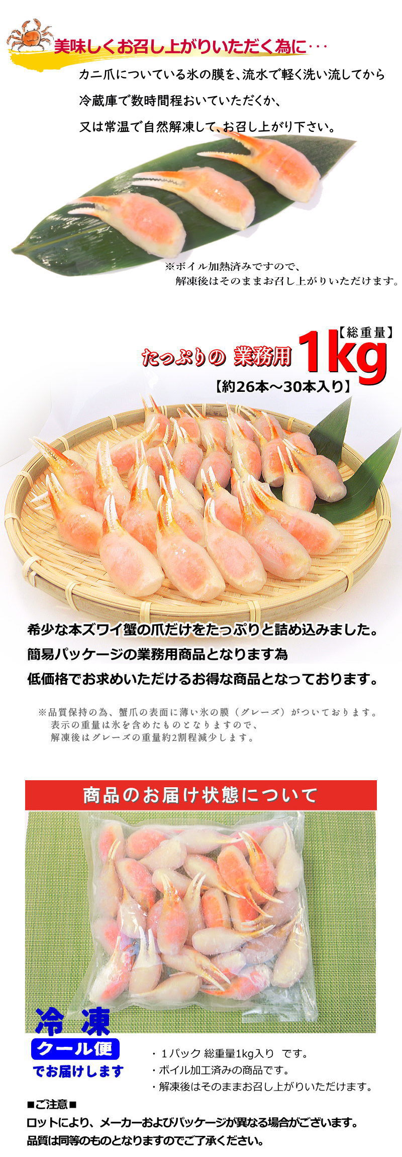> カニ爪 本ズワイ蟹 ボイル リングカット 1kg (約31-35個入) 冷凍 ずわい蟹 ズワイガニ 蟹