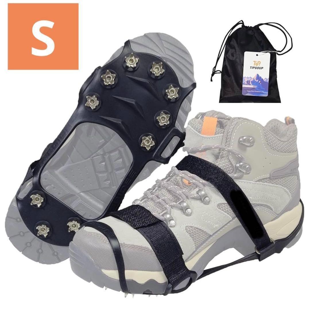 - 【新品】10本爪アイゼン Sサイズ 黒 軽量 登山 滑り止め靴底