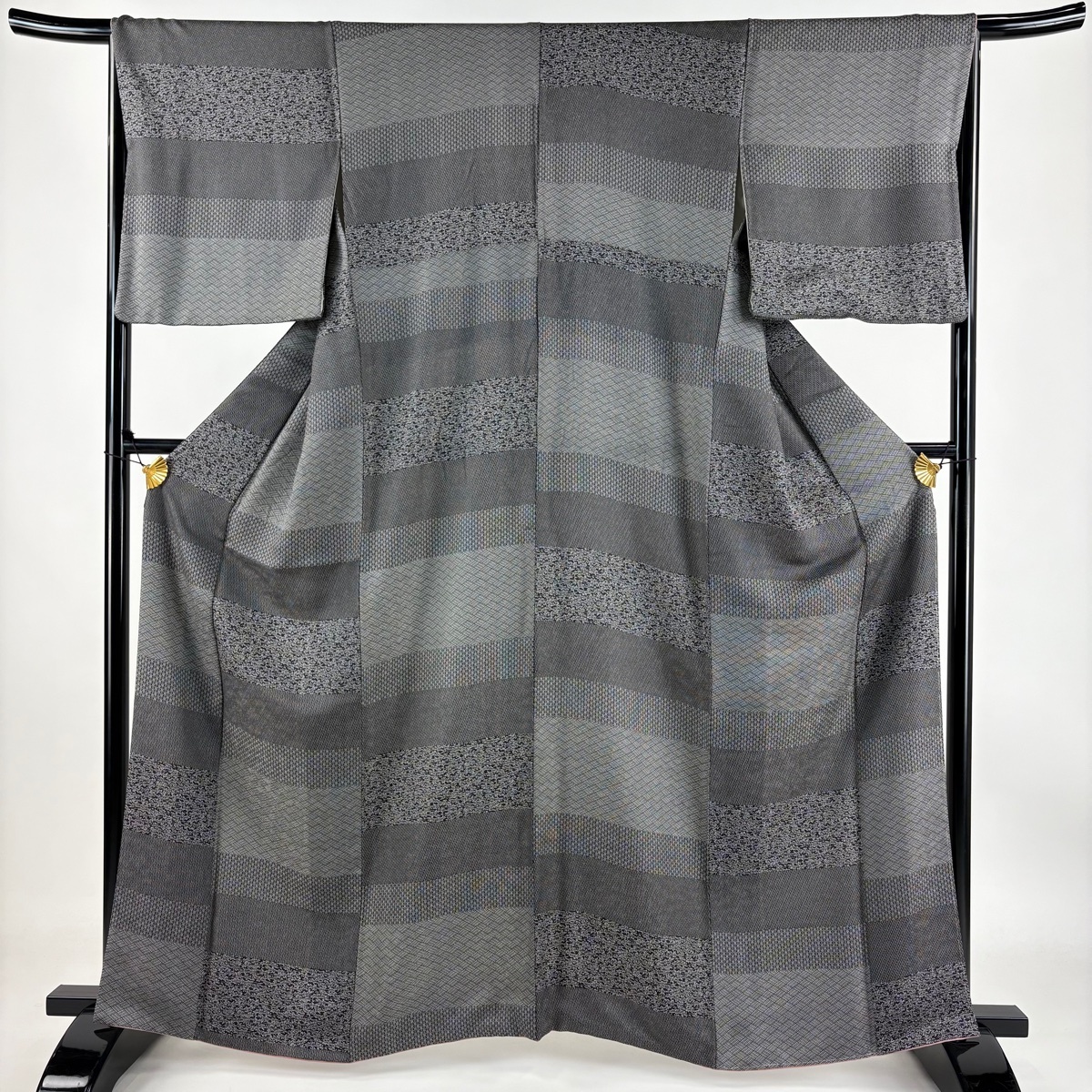 - 江戸小紋 身丈162.5cm 裄丈66cm M 袷 段縞 寄せ柄 黒灰 正絹 美品 秀品 【中古】